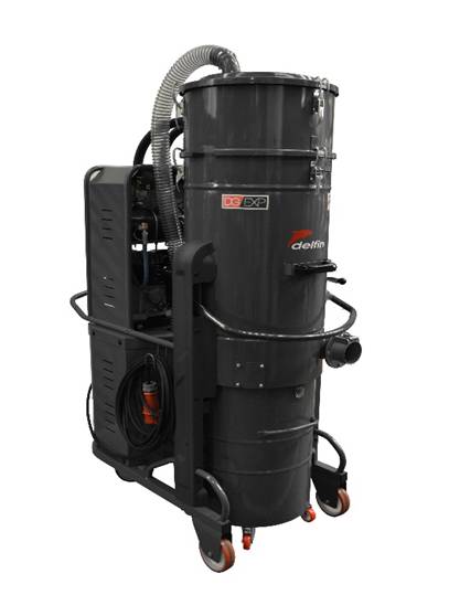 3個聚酯纖維筒式過濾網裝在鋼制過濾艙中,總過濾面積80000 cm2,過濾精度 高達1微米 。全自動空氣脈沖反吹清潔系統通過壓縮空氣輪流吹向筒式濾網,清潔頻率可通過控制面板上的定時器進行設置,能持續有效地清潔過濾網,清除附著在濾網上的大部分灰塵,從而保持機器正常的吸塵功效和延長濾網使用壽命。模壓鋁制吸塵口直徑為Ø80 mm,位于過濾網下面,能夠同時吸塵、吸固體和吸水(水量不得超過塵桶容量),無需更換或取出過濾網。 壓縮機需另配。