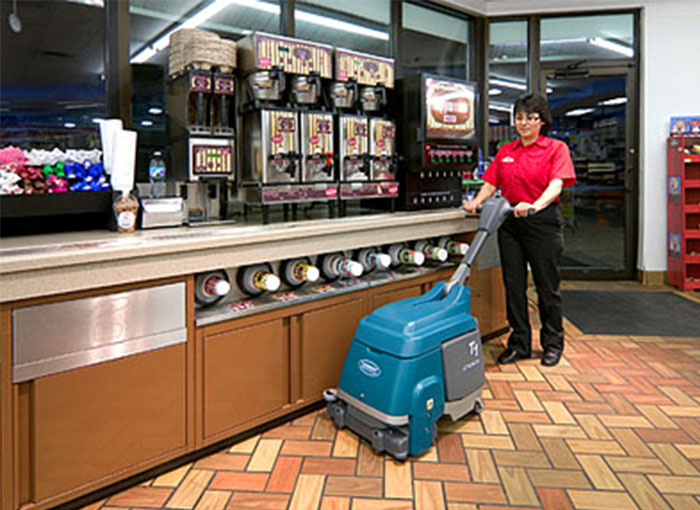 坦能T1B微型手推式洗地機(jī)可強(qiáng)力清潔狹小空間,完全替代拖把和水桶??蛇x配的鋰離子電瓶支持每天多次的洗地頻率。